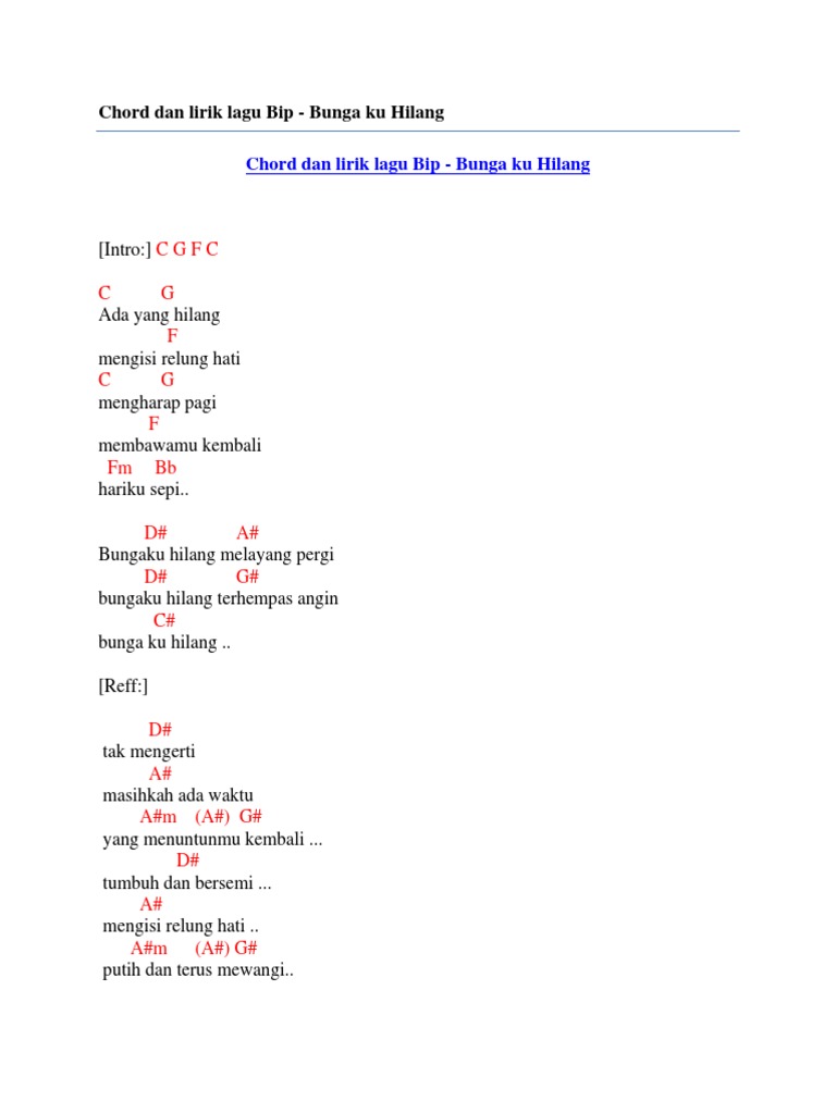 Chord Dan Lirik Lagu Bip Bunga Ku Hilang