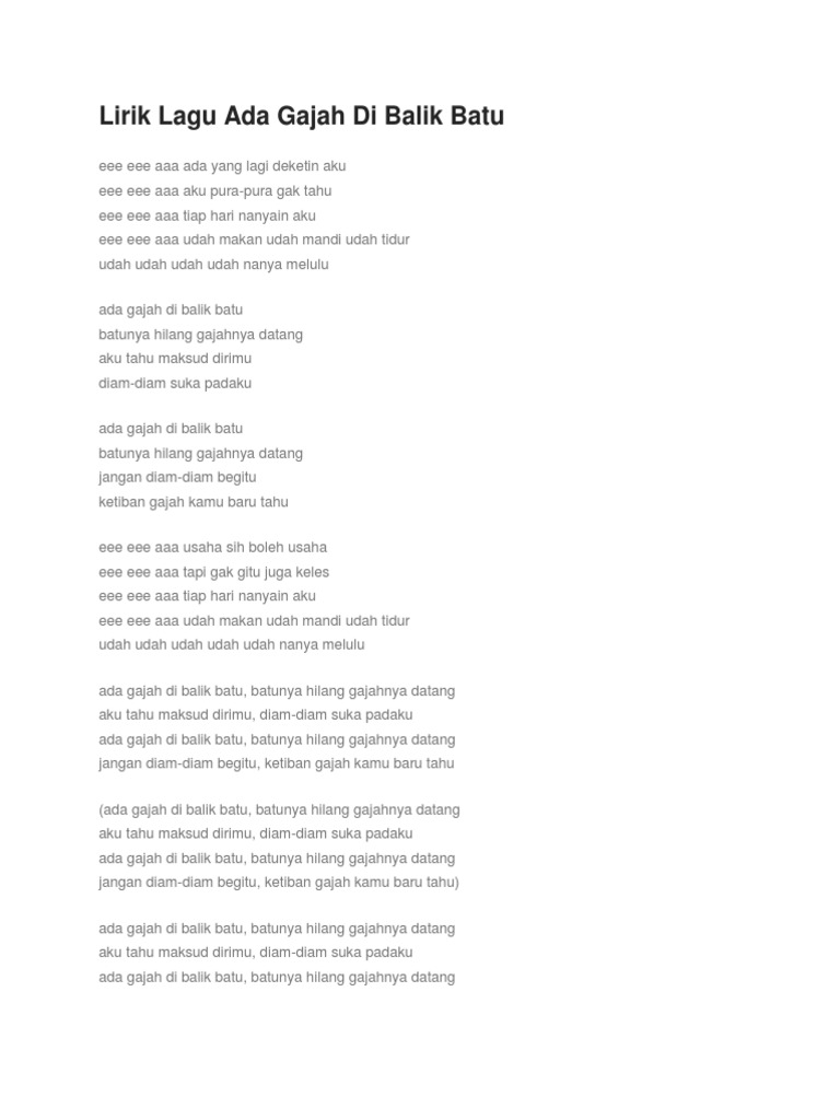 Teks Lagu Ada Gajah Dibalik Batu Berbagai Teks Penting