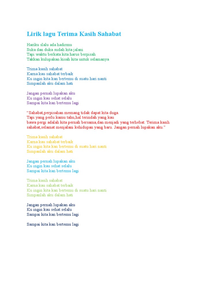 Lirik Lagu Terimakasih Sahabat Aldi Maldini Wattpad