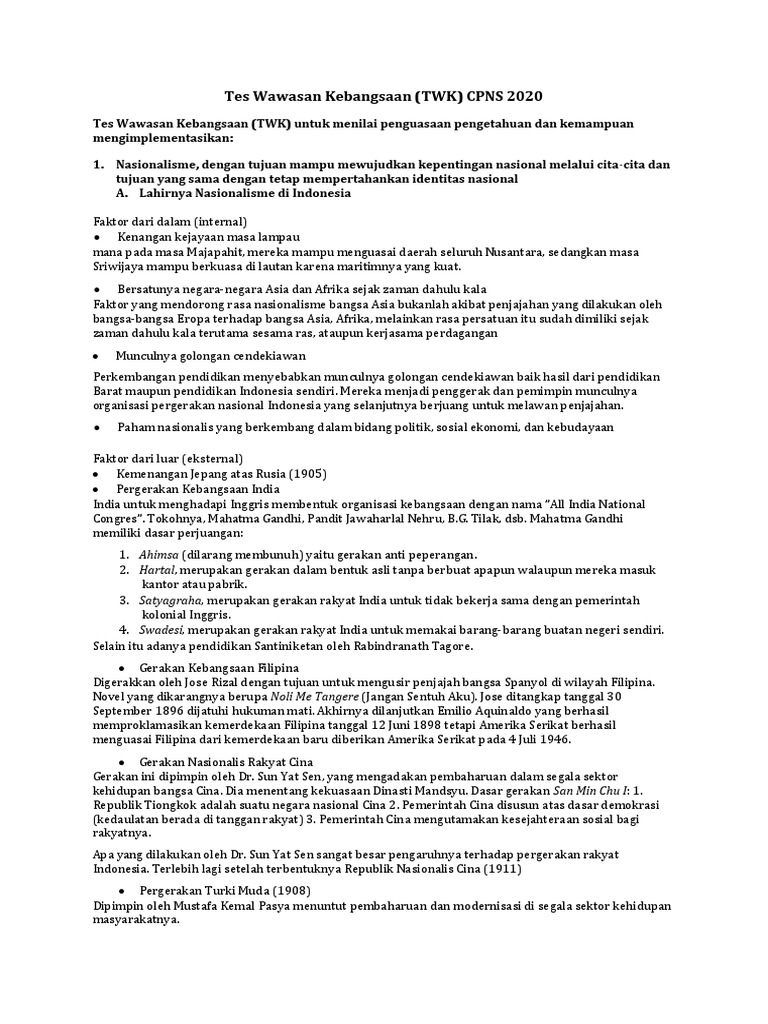 Soal Soal Materi Twk Berdasarkan Kisi Kisi Cpns 2019