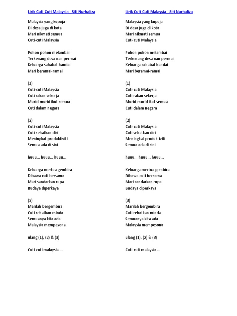 Lirik Lagu Cuti Cuti Malaysia