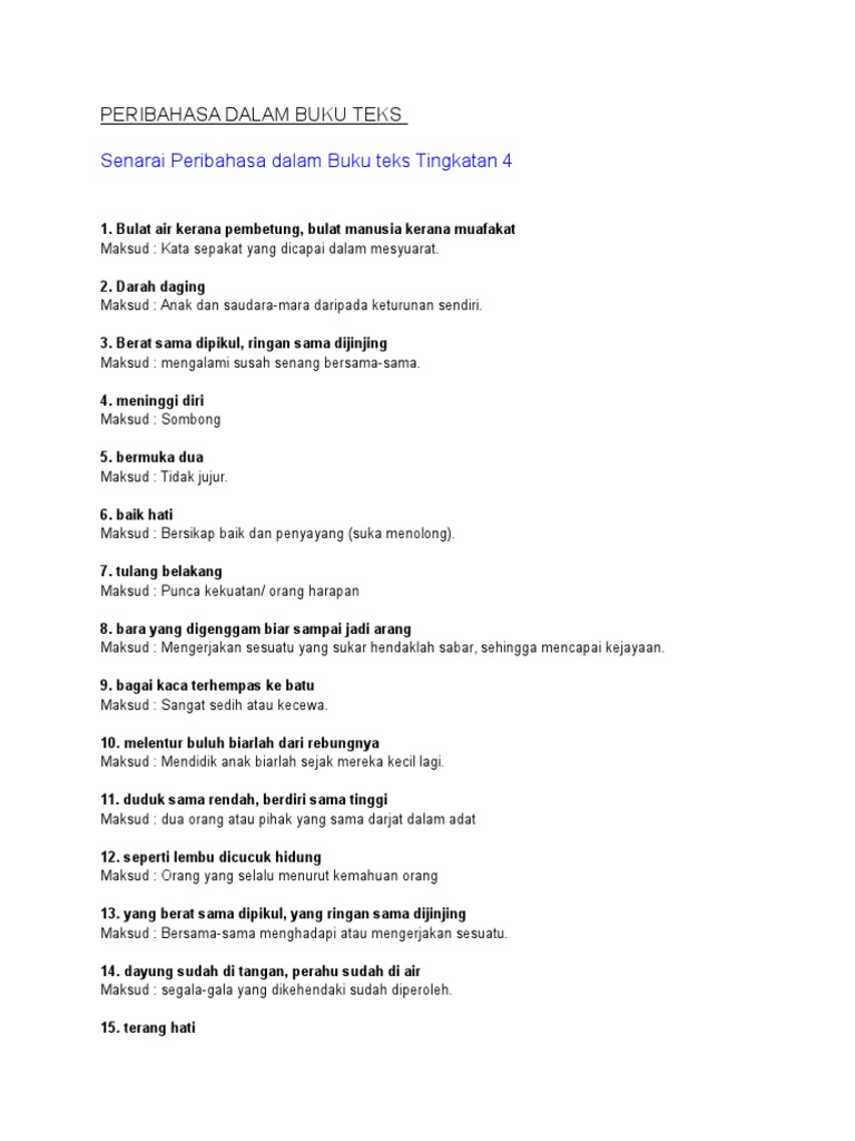 Doc Senarai Peribahasa Dalam Buku Teks Tingkatan Eeeee Waaaa Academia Edu