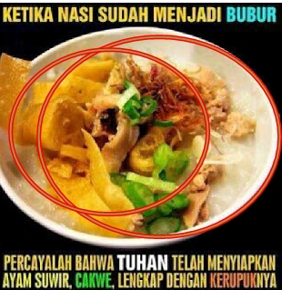 Ketika Nasisudah Menjadi Bubur Percayalah Bahwatuhan Sudah Menyiapkan Ayam Suwir Cakuesate Telurkerupuk Lengkap Bersama Bawang Gorengnya Indonesian Language Meme On Me Me